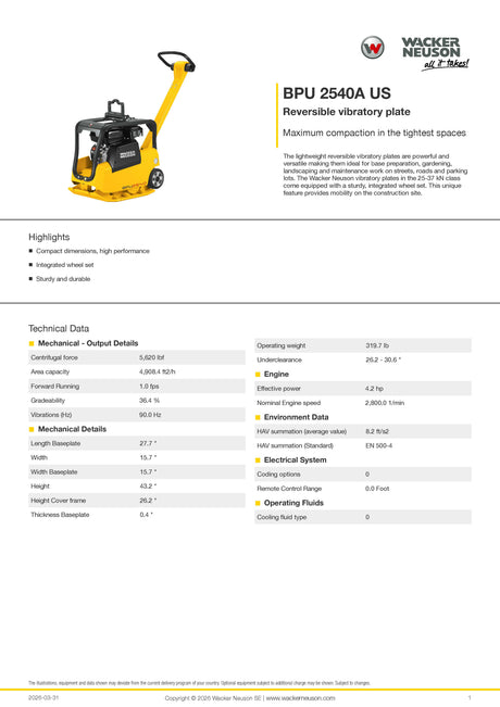 WACKER NEUSON BPU2540 REVERSIBLE PLATE TAMPER